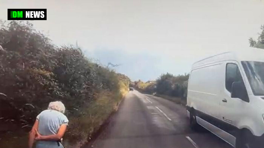“I just want to tell people to be careful on blind corners. If anyone knows this woman, they might want to advise her on walking down country lanes,” he added.